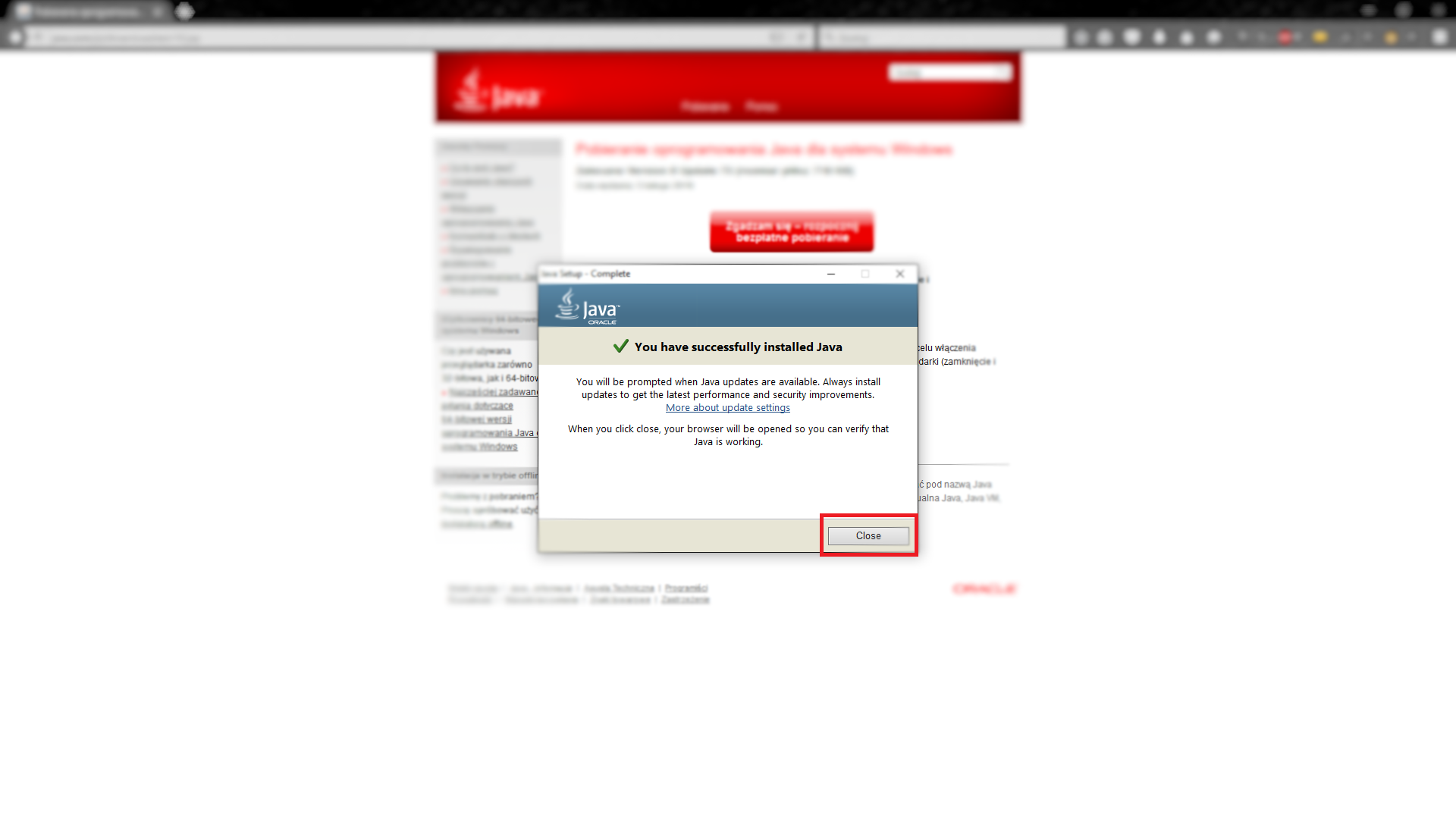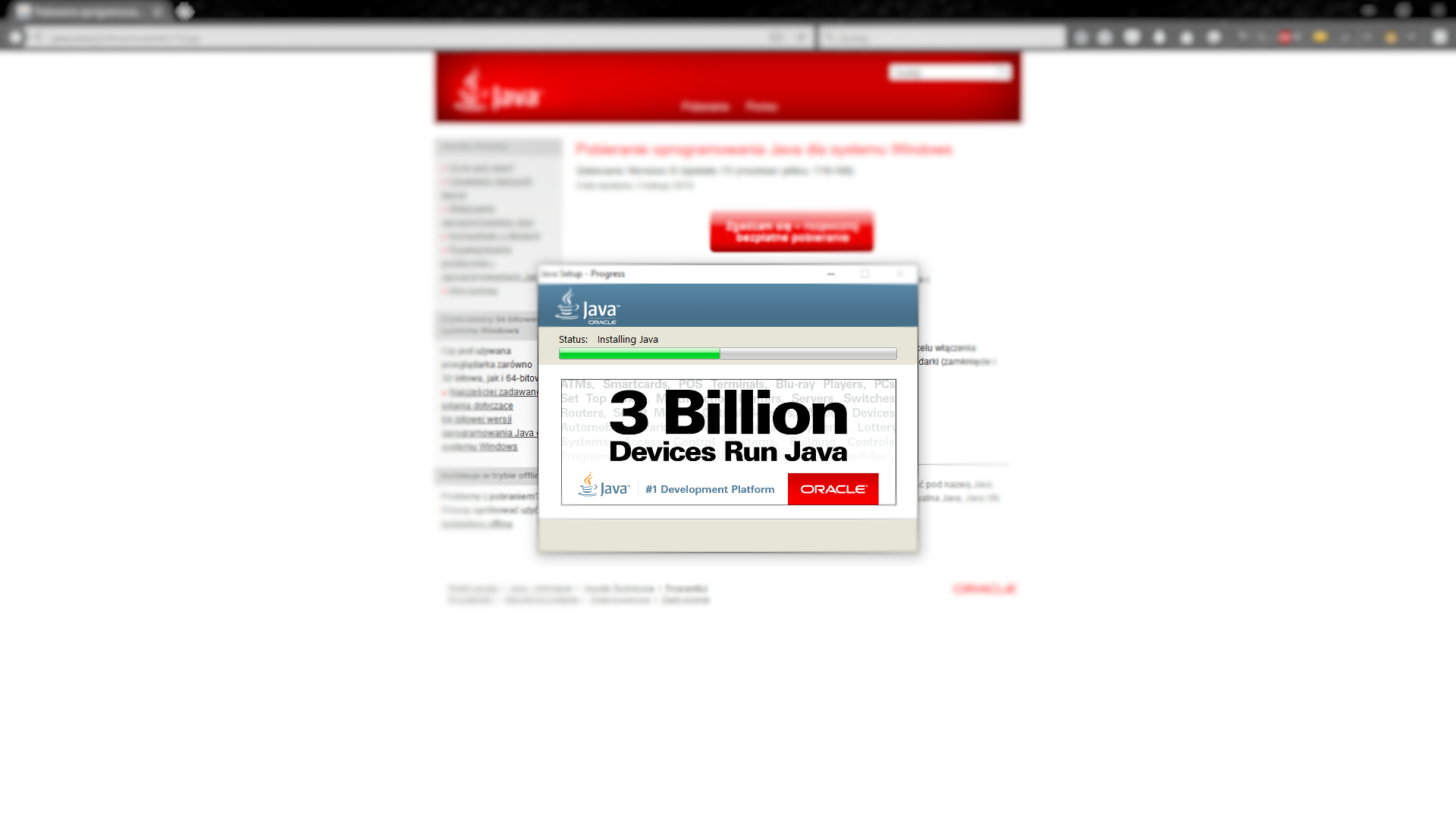Zdarza się, że przestarzałe wersje JAVA mają wpływ na najnowszą wersję. Należy je odinstalować. Wpływ mogą mieć wszystkie wersje JAVA z nazwą