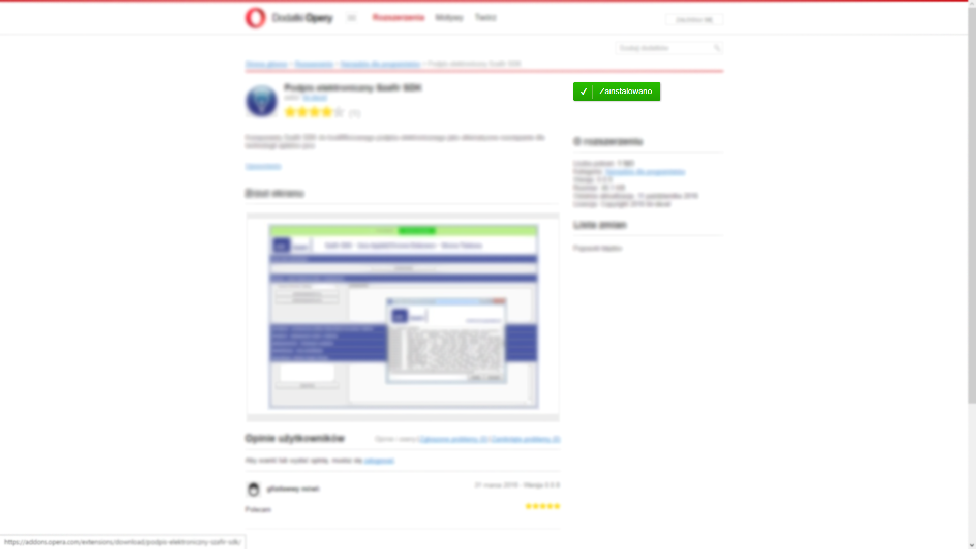 W przypadku komunikatu o braku zainstalowanego rozszerzenia Szafir SDK, należy je zainstalować klikając na przycisk "Instalacja rozszerzenia z Web Store":
